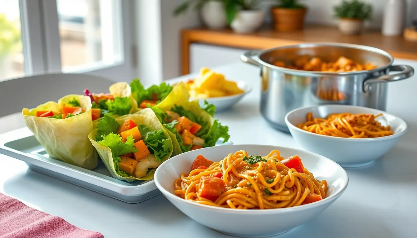 One-pot pasta dishes simplify lunch prep. Begin by selecting your favorite pasta type, such as penne or spaghetti. Combine it with ingredients like diced tomatoes, spinach, and garlic in a large pot. Pour in enough broth to cook the pasta and bring everything to a boil. Stir occasionally until the pasta absorbs the liquid and cooks through. Finish with grated cheese or fresh herbs for added flavor. Variations include adding protein like shrimp or shredded chicken to elevate the meal. Use this method to create a quick, hearty dish in one vessel.